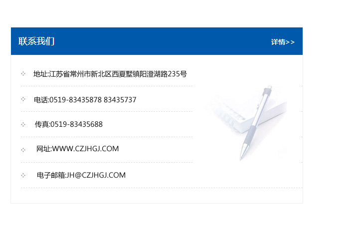 地址:常州市新北區(qū)友邦商務大廈1幢16、17層  電話:0519-85101652  傳真:0519-85112595  郵編:213022  網址:www_cz-jiayue_cn.zhengbenli.com  郵箱:xiajifengaa@163.com